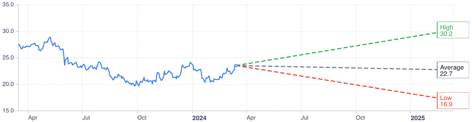 A definite positive is the future outlook. Earnings are expected to grow 8.6% per annum over the next three years. Cash flows — 63% of which are currently being used to cover dividend payments — will subsequently be boosted. Already for the first six months of 2023, net profit rose by 18%. Revenue is projected to continue to inch up, by 2.5% per annum.