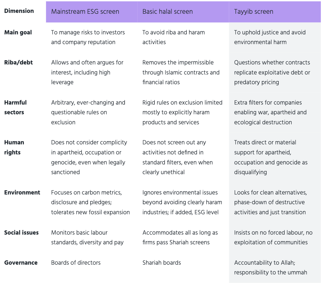 Islamic finance is only starting to look into tayyib, with some quarters producing broad principles that do not amount to anything in practice. Knowing how financial regulators operate and seeing how the AAOIFI has not budged throughout the Gaza genocide, we shouldn’t hold our breath on the tayyib finance project just yet.