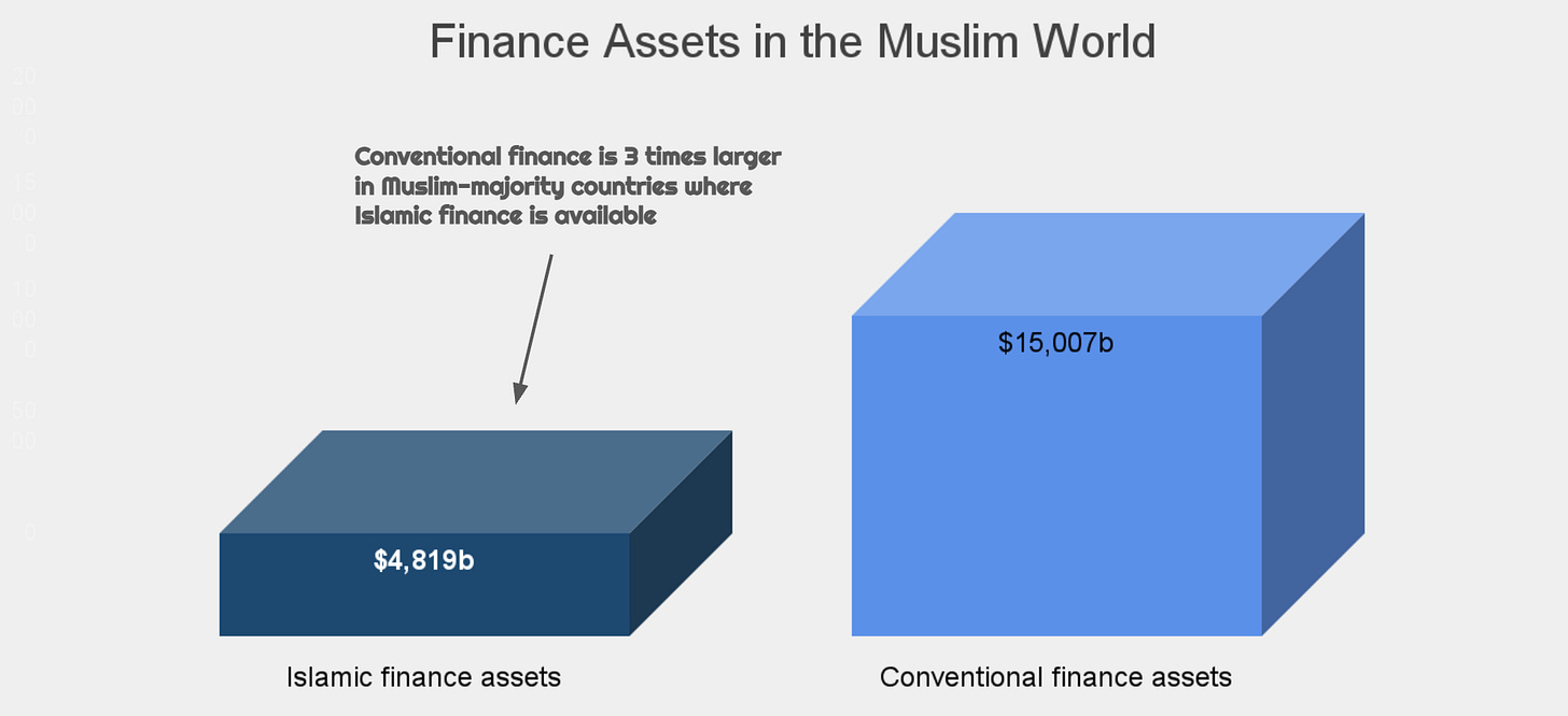 Conventional finance is three times larger in Muslim-majority countries where Islamic finance is available.