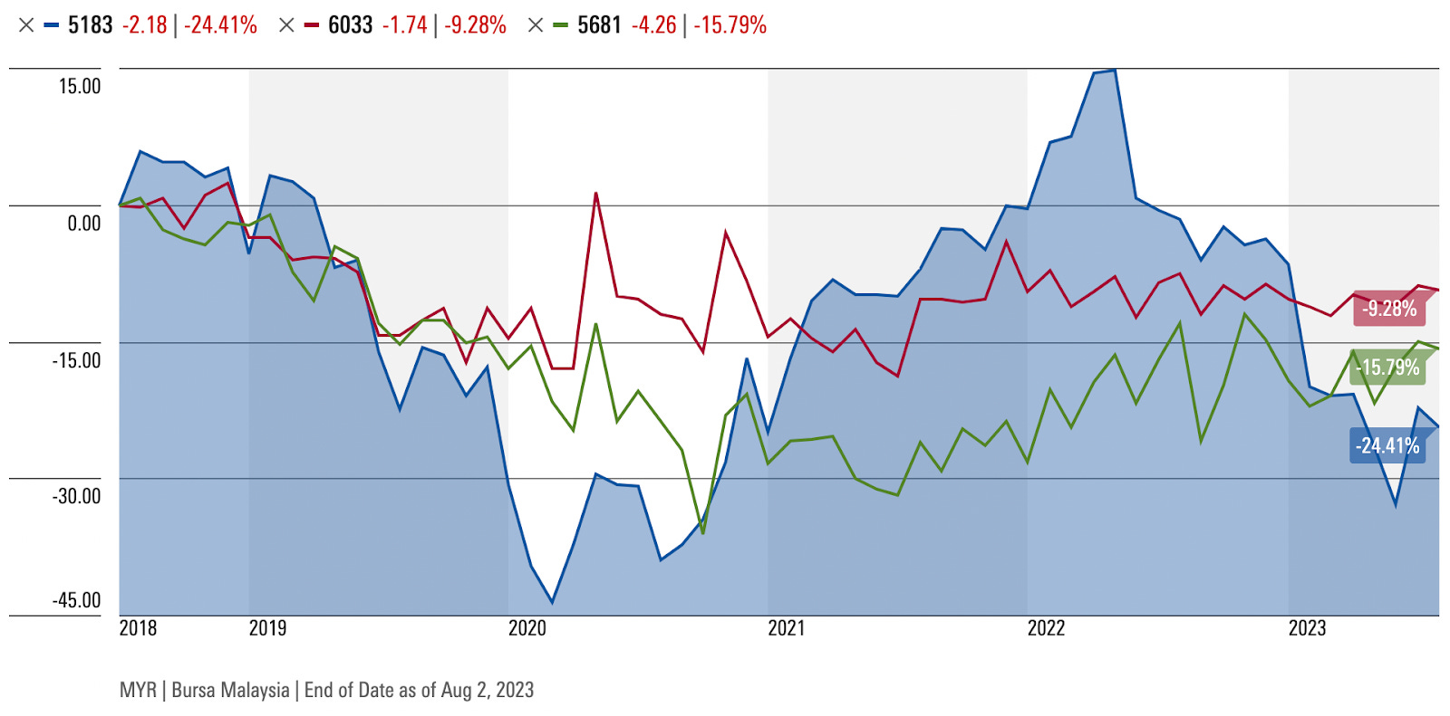 The largest of the three, Petronas Chemicals produces and sells commercial petrochemicals and their derivatives. The top name in the local industry, the company is also a major exporter to China and Southeast Asia.