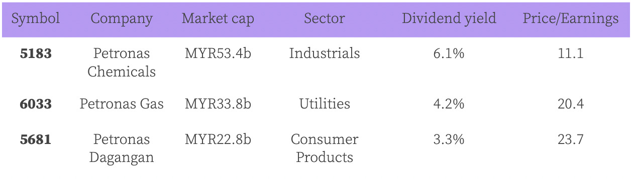 Price performance, however, is not the main point here. All of them are consistent Shariah compliant dividend payers with the record of increasing payouts over the last decade. Petronas Chemicals, in particular, at a yield of 6.1% is currently in the top quarter of the Malaysian market, although near-term challenges may bring the payments down to a lower pre-Covid median.